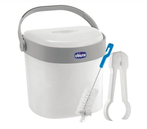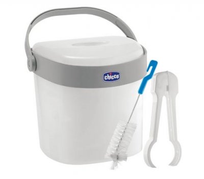 Chicco SterilBox - vrlo jednostavan proizvod koji uključuje uporabu posebnog sastava. Prodaje se u gotovo svakoj ljekarni u obliku topljivih tableta koje su sigurne i za djecu i za boce.. Međutim, ako je potrebno, može se kupiti unaprijed.