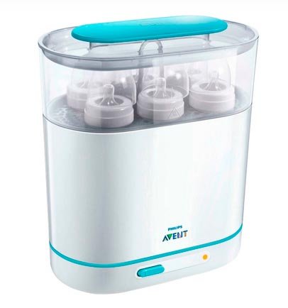 Mnogi roditelji to biraju zbog jednostavnosti održavanja i relativno niskih cijena. Oni tvrde da je to najbolji uređaj za sterilizaciju u najkraćem mogućem roku. Međutim, većina korisnika primjećuje prisutnost kontrolne razine vode. Tako možete samostalno pratiti rad uređaja, ne brinući se da nema dovoljno tekućine ili da će se izlijevati pri ključanju.
