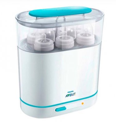 Ovaj proizvod je pao u našu ocjenu zbog svoje svestranosti. To omogućuje ne samo sterilizirati boce, nego i provesti procesiranje duda. Također, neki roditelji ga koriste za zagrijavanje smjese. Stoga je često klasificiran kao 3 u 1. To je vrlo zgodan jer vam omogućuje da spremite na kupnju dodatnih uređaja.