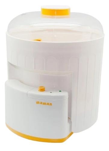 Sterilizator Maman BY-03 predstavlja proračunsku kategoriju uređaja. Sudeći prema recenzijama, obavlja odličan posao sa svojim zadatkom, koji u isto vrijeme sadrži do 6 boca, duda i drugih dječjih jela. Kućište uređaja izrađeno je od plastike, a posuda je izrađena od metala. Komplet sadrži prikladnu mjernu posudu i posebne klešta za vađenje vrućih predmeta. Ispod se nalazi križ, na kojem je kompaktno namotana vrpca. Za polaganje jela osiguran je poseban štand. Boce do 300 ml stavljaju se u sterilizator.