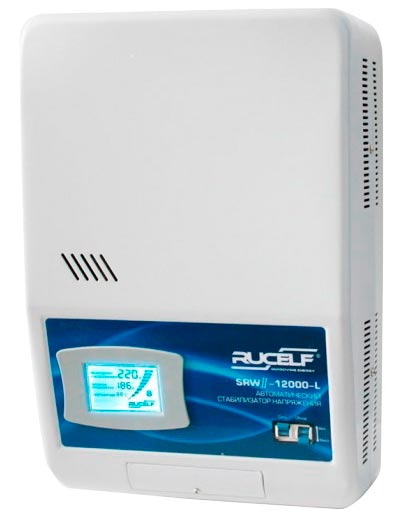 Treće mjesto na ljestvici najboljih stabilizatora za 10 kW zauzima uređaj RUCELF SRWII-12000-L. Model ima malo više punog kapaciteta od protivnika - 12 000 V · A. To će omogućiti rad uređaja u mrežama s nešto većim opterećenjem (veliki kućanski aparati, snažni električni motori). Njegova aktivna snaga je standardna za prva tri - 10.000 W.