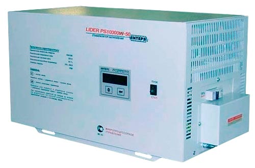 Lider PS10000W-50 je najskuplji uređaj u našoj ocjeni. Jedinstvenost ovog stabilizatora je da može raditi u vrlo širokom rasponu ulaznog napona. Zahvaljujući pomoćnom transformatoru, uređaj može raditi bez gubitka snage s minimalnim naponom od 128 V i maksimalnim naponom od 320 V. On nema relej i servo, nešto što se najčešće troši kod jednofaznih stabilizatora.