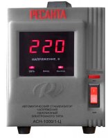 Bezuvjetno, najpopularniji stabilizatori za danas su uređaji tvrtke Resanta. Jedan od najprodavanijih modela tvrtke je Resant ACH-1000/1-Ts jednofazni stabilizator. Treće mjesto na ljestvici najboljih! Uređaj ima raspon ulaznog napona od 140 do 260 volti i radi s pogreškom od 8%. Opremljena je zaštitom od pregrijavanja i zaštitom od buke. Ovo je najprimitivniji stabilizator snage 1 kW koji je savršen za kućnu uporabu. Šteta je što su izlazne utičnice sa stabilizacijom na Resanti samo jedna jedinica. Natjecatelji imaju više reda veličine (Powercom, na primjer, 4).