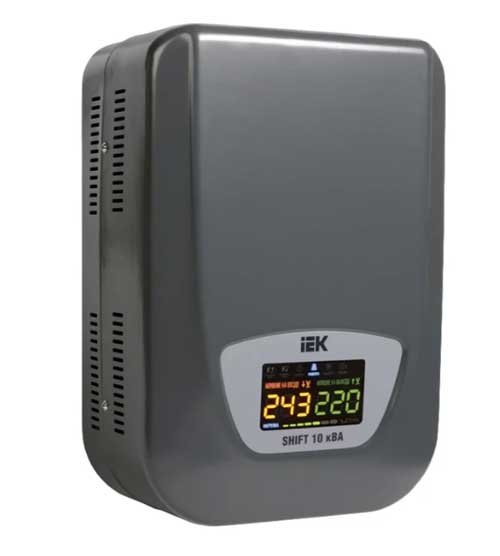 Jednofazni elektromehanički stabilizator u potpunosti će zaštititi svu opremu u privatnoj stambenoj konstrukciji ili stanu. Mogućnost postavljanja zida i dimenzije koje su dovoljno kompaktne za takvu snagu omogućuju ugradnju IEK Shift 10 kVA čak iu malom hodniku bez ikakvih posebnih problema. Suvremeni izgled, niska razina buke i visoke performanse smatraju se snagom ovog modela.