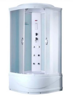 Jeftin, ali sasvim udoban i kvalitetan tuš poznate kineske tvrtke. Napravljen u obliku četvrtine kruga, ima relativno malu veličinu (90x215x90 cm), stoga je pogodan za ugradnju u malu sobu. Dolazi s visokim akrilnim pladnjem, klizna dvokrilna vrata izrađena su od neprozirnog valovitog matiranog stakla. Skup funkcija je standard za jeftine tuševe - od značajki postoji samo tropski tuš. Ako želite, možete koristiti uobičajenu limenku za zalijevanje. Za udoban tuš tuš sjedalo je predviđeno.