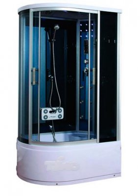 Polukružni Timo TE-0780 je najbolja zatvorena kabina u smislu omjera dostupnih značajki i pristupačnosti. Opremljen je visokim pladnjem (42 cm) izrađenim od akrila, što vam omogućuje da sjednete u kadu. Prednje staklene stijene su neprozirne i praktične za uporabu, jer skrivaju prskanje suhe vode. Postoje opcije za vertikalnu hidromasažu i hidromasažu leđa, kao i kišni tuš.