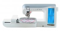 Šivaći stroj je opremljen memorijskim uređajem koji pohranjuje do 30 često korištenih funkcija ili neovisno programiranih uzoraka. Pomoću gumba na ploči možete brzo odabrati radni bod ili promijeniti parametre uboda. Dodatna bočna ploča postavljena je na platformu crijeva, što značajno povećava radnu površinu.