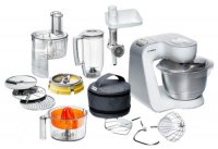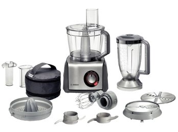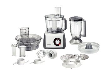 Bosch MCM 68885 - jedan od najprodavanijih modela prerađivača hrane s miješalicom. Kompletan je sa svime što je potrebno, uključujući i disk za rezanje na kockice - iznimno popularnu mlaznicu za pripremu povrća za salate. Unatoč relativno niskoj cijeni, uz kombajn su uključeni i ribež, višenamjenski nož, uređaj za rezanje slamki i kockica, umutak za bičevanje i tijesto.