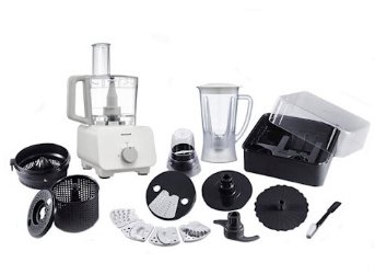 Otvara vrhunske Panasonicove jeftine kombajne MK-F500WTQ s najoštrijim noževima od nehrđajućeg čelika. Prilikom sastavljanja morate biti oprezni, kupci kažu da je lako ozlijediti. Noževi se samooštre, brzo se nose s najtežim proizvodima. Komplet uključuje mlaznice za usitnjavanje, helikopter, rende za rezanje na kocke, kriške i trake. Postoji jedinstvena značajka proizvoda za sušenje - za nekoliko minuta povrće je spremno.Kombinacija vam omogućuje pripremu koktela, umaka i napitaka uz pomoć imerzijskog miješalice. Čaše i zdjela izrađeni od materijala Eastman Tritan, koji je jači od plastike i metala. Model se lako čisti i pere, uključujući i stroj za pranje posuđa.
