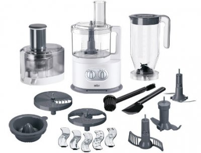 Braun FX 3030 otvara vrh najboljih u cijeni i kvaliteti zahvaljujući praktičnosti i jednostavnosti korištenja. Prehrambeni procesor zauzima više mjesta u odnosu na ostale modele u poretku, ali ima izvrstan raspored gumba i poluga. Zdjela i čaše izrađeni su od izdržljive plastike, opremljene ručkama za pričvršćivanje. Otporne su na mrlje i ogrebotine. Pribor se može prati u perilici posuđa. Postoji funkcija podešavanja brzine, pa će procesor hrane početi raditi u navedenom načinu. Unatoč 16 tisuća okretaja u minuti, model ne stvara buku i ne tutnja.