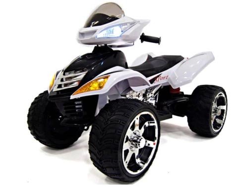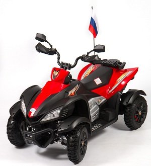 Svjetski poznati proizvođač dječjeg prijevoza RiverToys izvrstan je model električnog ATV-a. Ima vrlo atraktivan izgled za djecu: ultra-moderno tijelo sa svjetlećim prednjim svjetlima, smješteno na velikim kotačima s elegantnim kotačima. Pokret započinje s pritisnutom papučicom, a maksimalna brzina iznosi 6 km / h. Električni automobil ima visok promet, veliku nosivost (do 40 kg) i 2 kapaciteta 6V / 7 Ah baterije. Snažan motor omogućuje djetetu da se osjeća kao pravi vozač. Udobno sjedalo osigurava pravilan položaj leđa i ne uzrokuje bol čak i tijekom dugih putovanja. ATV je posebno dizajniran za vožnju po ulici, igralištu itd.