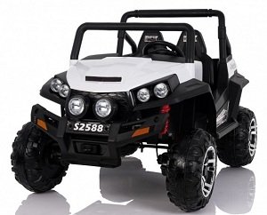 Jahači se ne rađaju, već postaju od rane dobi. Takav spektakularan vanjski SUV uzrokuje najviše pozitivnih emocija kod djece u dobi od 2 do 6 godina, jer je namijenjen njima. Sjajno slikanje tijela je trajno i štiti ga od ogrebotina, čipsa, prljavštine. Za bolju sigurnost, dizajn ne osigurava otvaranje vrata. Relativni nedostatak uređaja može se smatrati plastičnim sjedalom. Međutim, s obzirom na proračunsku vrijednost modela, ovaj nedostatak ne uzrokuje nikakve komentare.