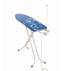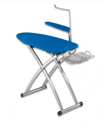 - Ploča je opremljena držačem kabela i prikladnom vješalicom na koju je lako postaviti vješalice s glačanom odjećom. Tu je i stabilno široko postolje, prikladno za uobičajeno željezo i, zahvaljujući otpornosti na toplinu, za generator pare.