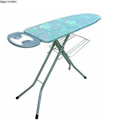 Njemački model Zalger Confetti savršen je za čestu uporabu kod kuće, jer zadovoljava sve zahtjeve za visokokvalitetnom opremom za glačanje uz proračun. Osnova stola je perforirani čelični monoblok koji omogućuje slobodan prolaz struje vlažnog zraka pri skidanju rublja. Osim toga, proizvod ima sljedeće prednosti:
