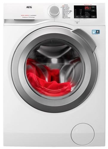 AEG perilica je vodeća u brzini centrifuge (1.400 r / min). Izjave govore da model karakterizira povećana pouzdanost i izvrsna kvaliteta izrade. Po broju žalbi s kvarovima, ovaj proizvođač je jedan od najrjeđih. Perilica rublja postavljena sprijeda s kapacitetom do 8 kg korisnika suhog rublja voli ne samo za pouzdanost, nego i za izvrstan izgled. Model izgleda elegantno i moderno zbog kontrole dodira i digitalnog prikaza.