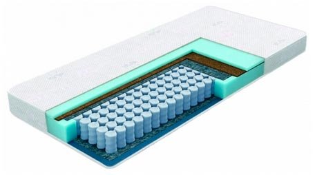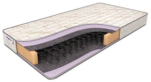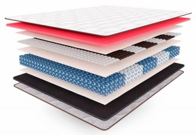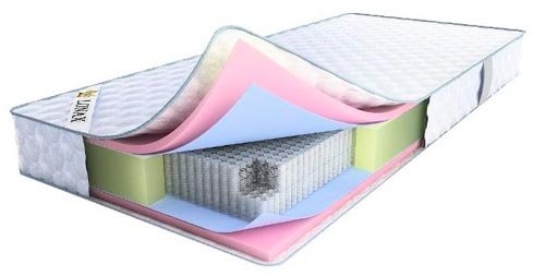 - Osnova je zavisni opružni blok i punilo od poliuretanske pjene. Ovaj materijal je sličan pjenastoj gumi, ali na štetu malih ćelija ima veću elastičnost, što joj omogućuje bolje održavanje izvornog oblika i nakon godina rada.