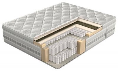 - dizajn, Osnova opružnih madraca je poseban opružni blok koji osigurava visoku otpornost na trošenje proizvoda. Takvi madraci nemaju ograničenja na težini praga, a također se razlikuju izraženim anatomskim svojstvima zbog točnog rada opruga. Modeli bez elemenata izrađeni su od prirodnih i umjetnih materijala. Dušeci mogu biti monoblok ili sastavljeni od nekoliko slojeva. Zbog toga se postiže različit stupanj krutosti. Proizvodi bez elemenata prikladni su za transformirajuće baze. S njima ćete zaboraviti na škripanje i učinak proljeća.