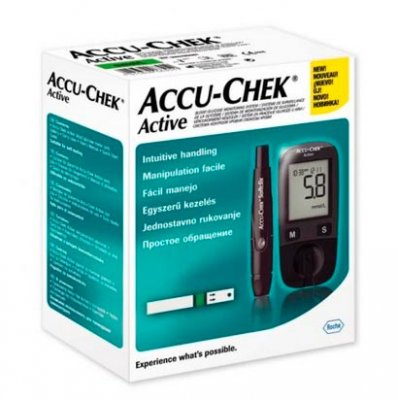 Posljednju liniju rangiranja jeftinih mjerača glukoze u krvi zauzima Accu-Chek Active, koja ima najbolji kapacitet memorije među sličnim uređajima. Proizvode ga njemačka tvrtka Roche Diagnostics GmbH, vodeći dobavljač medicinske opreme. Uređaj radi na principu kodiranja. Krv se može uzeti ne samo s prsta, nego i iz podlaktice, ramena, tele, dlana. To osigurava dodatnu udobnost. Takav je uređaj pogodan za ljude različite dobi.