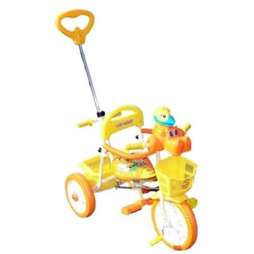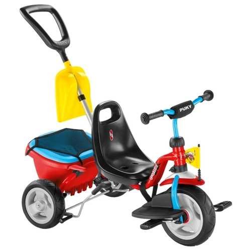 Tricikl s ručkom je uistinu njemačka kvaliteta i praktičnost. Model je težak 5,8 kilograma, zahvaljujući kojem će dijete brzo naučiti kontrolirati svoje prvo vozilo. Izdržljivo metalno kućište s savršeno ugrađenim dijelovima savršeno se kombinira s velikim lijevanim kotačima od PVC-a, jednim od najtiših materijala. Takvi kotači uspješno prigušuju vibracije pri hodu po neravnim cestama. Pogodnost je postignuta i čvrste podloge pod nogama.Lijep bonus bi bila sigurnosna zastava opreme za bicikle, velika plastična košara ispod igračaka i kašika za pijesak.