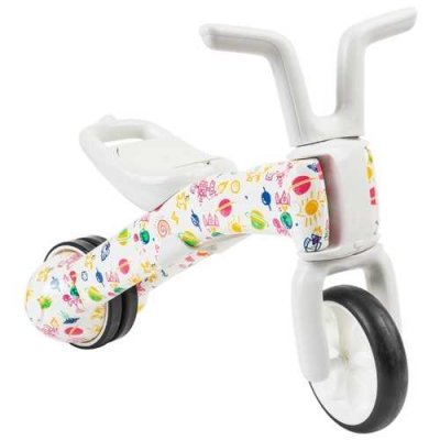 Lakonski i lagani za ovu kategoriju, runbike otvara prvih pet vozila za djecu od 3 godine. Unatoč minimalizmu i proračunu, model izgleda elegantno, moderno i vrlo moderno zahvaljujući elegantnom, ali robusnom bijelom okviru od aluminijske legure, koji se savršeno kombinira sa svijetlim naglascima: zelenim, plavim, narančastim ili plavim upravljačem, kotačima i sjedalom. Jednostavno podešavanje kotača omogućit će runbikeu da "raste" zajedno s djetetom.