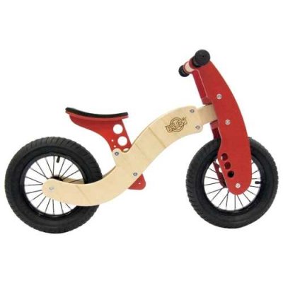 Drveni nabijač - rijedak, ali nevjerojatan fenomen. Djeca vole model s lijepom teksturom, neobičnim izgledom i činjenicom da se materijal ne zagrijava na suncu. Odrasli će cijeniti ekološku prihvatljivost, stabilnost i pouzdanost dječjeg vozila. Najbolje od svega, drveni bicikl odgovarat će djetetu od 3 do 5 godina, budući da okvir od punog drveta čini gradnju težom do 4,7 kilograma. Osim toga, bicikl je dizajniran da raste od 75 do 112 centimetara i teži do 30 kilograma, a također je dobio dobre gume na napuhavanje. Dodatna prednost bila je oslonac za noge za parkiranje, koje dijete od 3 godine može lako podnijeti.