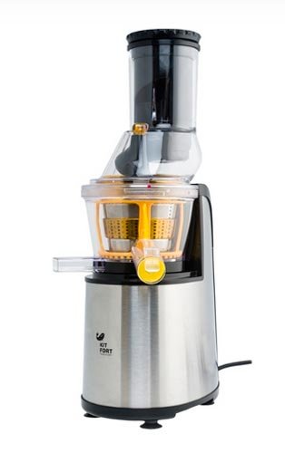 Prva linija rangiranja najboljih vijčanih juicers je Kitfort KT-1102. Zbog vertikalnog dizajna, zahtijeva minimalan prostor u kuhinji. Snaga 150 W u agregatu s brzinom vrtnje vijka od 80 o / min. omogućiti vam da dobijete maksimalne rezultate i izvadite sav sok iz voća ili povrća. Pulpa se automatski baca u poseban spremnik s volumenom od oko 1 litra. Tijelo sokovnika izrađeno je od praktične plastike koja je otporna na udarce i nije izložena kontaminaciji.