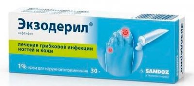 Izvorna proizvodnja lijekova austrijske tvrtke Sandoz. Aktivni sastojak - naftifin, krši strukturu zida gljivičnih stanica, što uzrokuje njihovu smrt. Ima ne samo antifungalnu, već i protuupalnu i antipruritičku aktivnost, koja može biti važna ako se gljiva proširila izvan nokta. Bijela sjajna krema sa slabim karakterističnim mirisom dostupna je u epruvetama od 15 i 30 g. Ima dobre kritike liječnika. Uključene su u Savezne kliničke smjernice za liječenje gljivica kože i noktiju.