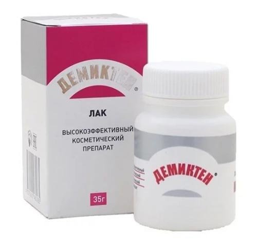 Među lakovima protiv gljivica noktiju, “Demicten” zauzima posebno mjesto. Ovaj alat je pogodan čak i za djecu i trudnice, jer proizvedene na prirodnoj osnovi. Nanosi se u malim količinama na nokte, stopala i kožu, stvarajući zaštitni film.On služi kao barijera protiv infekcija i bakterija. Učinak laka temelji se na aktivaciji rasta zdravih stanica i stimulaciji imuniteta.