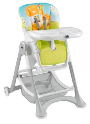 Model visoke stolice Campione iz poznate tvrtke CAM pogodan je za one koji traže kompaktnu i laganu verziju dječjeg namještaja. Proizvod ima dimenzije 109 x 84 x 62 cm i težinu od nešto više od 9 kg. Zbog toga dizajn ne zauzima puno prostora u prostoriji, a također se lako premješta. Prednje noge su nepomične, dok stražnje noge imaju udobne plastične kotače. Držeći i podižući stolicu uz podnožje, lako se može transportirati na pravo mjesto. Svaki od kotača ima čep koji blokira kretanje. Okvir, kao i ostatak Campionea, izrađen je od izdržljive plastike.