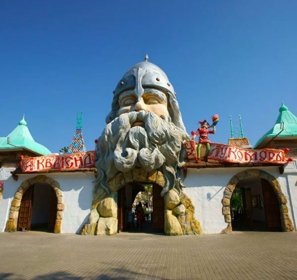 Desno u središnjem parku odmarališta grada Evpatoria je popularni vodeni park "Lukomorya". Njegova glavna značajka je dizajn. Svako brdo i kompleks napravljeni su u nevjerojatnom stilu. Na samom ulazu goste dočekuje veliki junak. Na području možete pronaći poznati hrast iz rada Puškina i mnoge likove iz vaših omiljenih bajki. Odrasli će uživati u vrtoglavim vožnjama, a djeca se mogu zabaviti u odvojenim dječjim kompleksima. Bazeni imaju poseban premaz protiv klizanja na dnu radi sigurnosti djece i optimalne temperature vode.