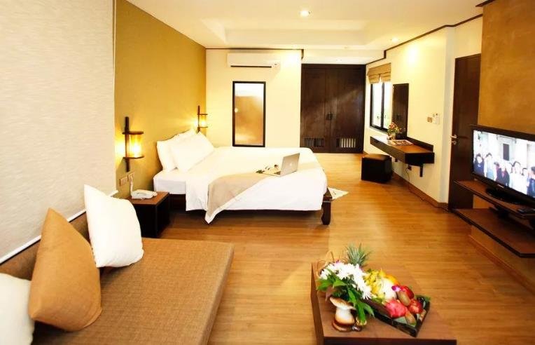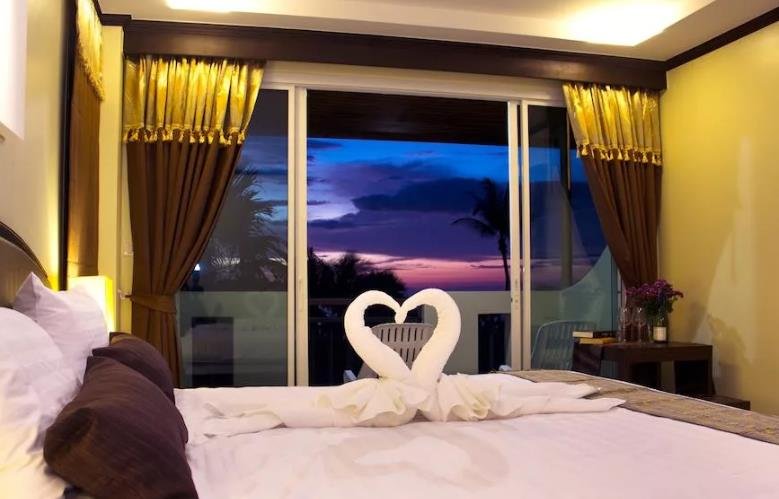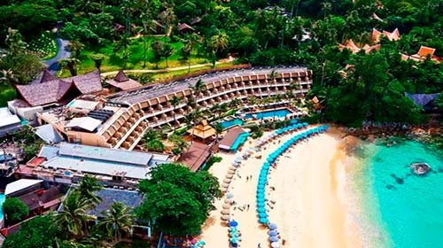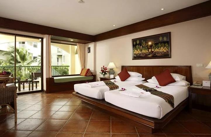Besprijekorna čistoća, raznolik jelovnik, pristupačne cijene i blizina mora su prednosti koje razlikuju pogled na otok Phuket od konkurenata. Uronjen u zelenilo, hotelski kompleks u tradicionalnom tajlandskom stilu uključuje glavnu zgradu i pojedinačne bungalove. Područje je veliko i udobno, a 3 bazena dostupna su 24 sata dnevno. Prijava traje nekoliko minuta bez obzira na vrijeme dolaska. Sobe su spojene na centralni klima uređaj s malom bukom. Čišćenje se obavlja svakodnevno, dok se zaliha pribora za kupanje, voda, čaj, kava i šećer obnavljaju, a dostavljaju se u porcijama za svaku osobu koja se odmara. Sobe imaju prostrane balkone, a na zahtjev su dostupni dječji krevetić i plaćena dadilja.