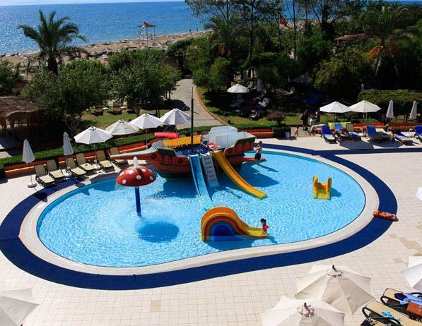 Gosti slave veliku pješčanu plažu, a svi sadržaji za ugodan boravak pružaju se besplatno. Postoji izbor, pijesak i šljunak, tako da će i mala djeca moći samostalno pristupiti vodi. Svaka soba ima balkon i mali TV. Za starije posjetitelje nalazi se kozmetički salon, nekoliko velikih barova, restorana i suvenirnica. Unatoč raznovrsnosti zabave na vodi, ne postoje aktivni programi na području, mladi parovi i pojedinačni turisti mogu postati dosadni. Isto tako, posjetitelji upozoravaju da je tijekom sezone velika količina izbjeljivača u bazenu, ali većina turskih naselja ga ima.