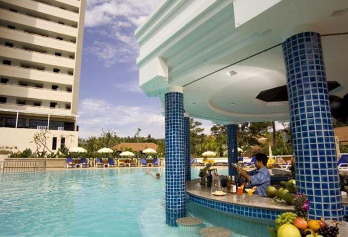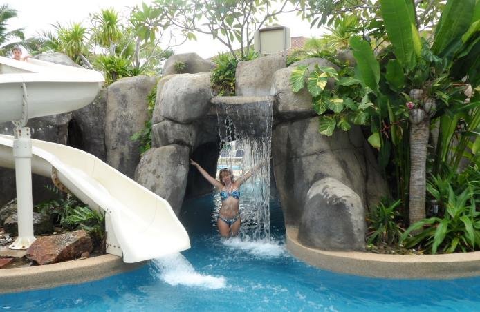 Hotel na prvoj liniji. Plaža se nalazi u maloj, zaštićenoj uvali. Iako je javna, kao i svuda u Tajlandu, nije jako gužva zbog svoje skrovite lokacije. Potrebno je otići do mora preko ceste, ali promet je ovdje mali, a prijelaz je zgodan i siguran: policajac prati prioritetni promet pješaka na zebri. Besplatni ležaljki za sunčanje u sklopu hotela nalaze se na travi u sjeni palmi. Na recepciji trebate odmah razjasniti je li broj u susjedstvu: u ovom slučaju bolje je dodatno platiti za poseban broj. Bazeni različitih dubina. Mini-vodeni park i dječja soba namijenjeni su djeci mlađoj od 7 godina i rade do 18 sati. Nema animacije. Nakon 21.00 sata gotovo je potpuna tišina, usprkos blizini grada.