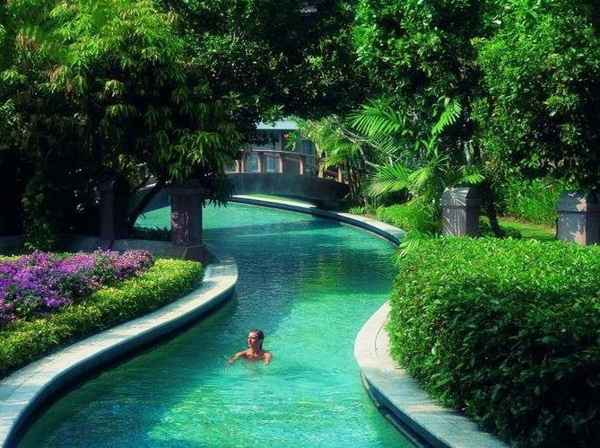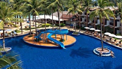 Hotel se nalazi u laguni, pa je kupanje udobno i sigurno čak i za bebe. Plaža je vlastita, koja se rijetko može vidjeti na Phuketu, tako da ima besplatnih ležaljki. Za obiteljski život preporučuje se zauzimanje soba s pristupom travnjaku.Na području se nalazi dugi bazen s hidromasažom, lijena rijeka i vaterpolo. Općenito se osjeća da je ovdje radio dobar krajolik: tu je jezero, rijeke s mostovima, cvjetni vrtovi. Čak i uz veliki priliv kineskih turista koji su došli ovdje, uvijek možete pronaći skroviti kutak za opuštanje.