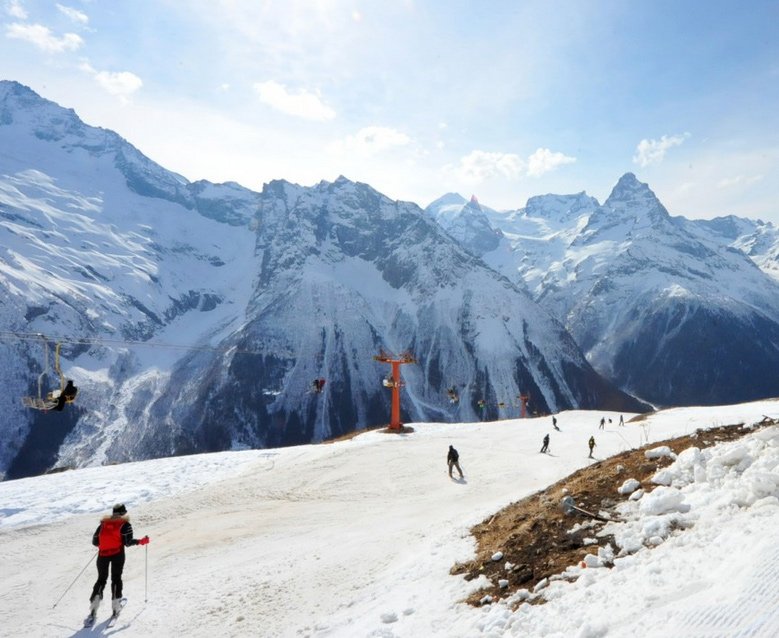 Vrijedno 4. mjesto zauzelo je rusko Dombai, koje turiste privlači 20 km staza različite težine. Naselje se može pohvaliti dobro uređenim stazama i razvijenom mrežom žičara, uključujući pendulum, gondolu i žičare. Ovdje se već nekoliko puta održavaju međunarodna natjecanja u freestyle Svjetskom kupu, a staze izazivaju iskusne snowboardere i skijaše. Hoteli se aktivno ažuriraju, neki su certificirani i primljeni 3 * ili 4 *. Cijene su malo visoke, ali usluga je također na dobroj razini. Postoje jeftinije opcije - udobni mali hoteli s 10-15 soba.