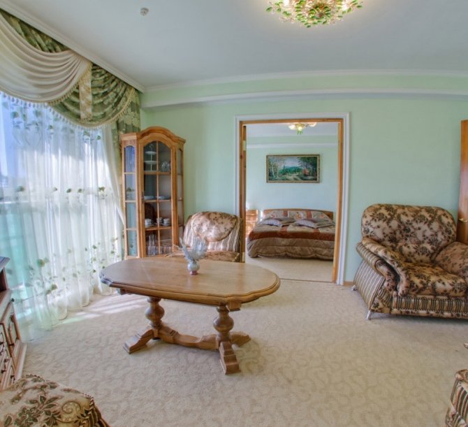 Recenzije gostiju pokazuju da mnogi ljudi vole park s uređenim cestama, zelenim površinama, travnjacima i sjenicama. Malo dalje je vrt s cvijećem, trgovinama, kafićima i suvenirnicama. Obroci se pripremaju za svakog gosta, a izbornik priprema kuhar prema uputama nutricionista. Postoji ukupno 15 dijeta od kojih možete birati, od niskokaloričnih do visoko ugljikohidratnih. Tablica postavljena 4 puta dnevno, ali možete jesti u restoranima u gradu. Tu je svečani meni i zabavni programi. Gosti vole sve, upozoravaju samo na lokaciju soba: od nekih možete vidjeti gradilište, o tome morate unaprijed razgovarati. Nema bračnih kreveta.