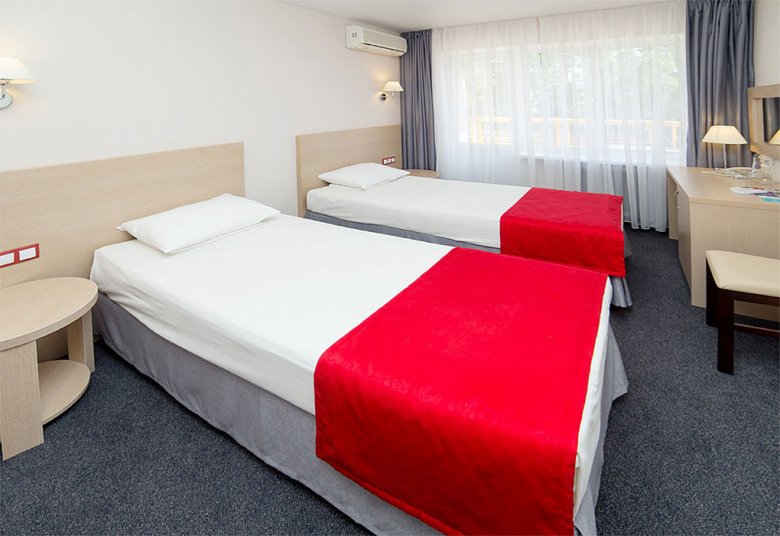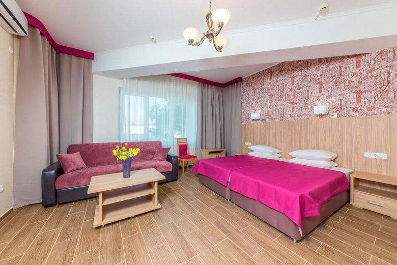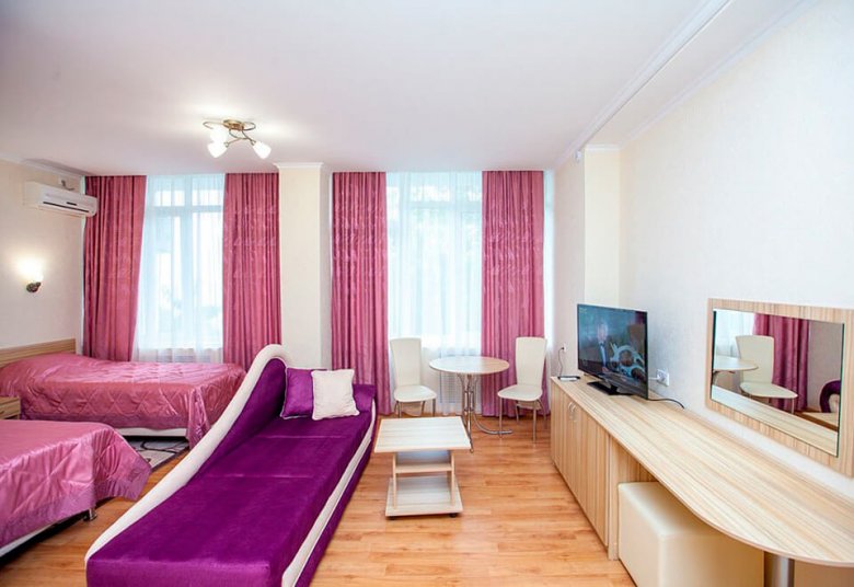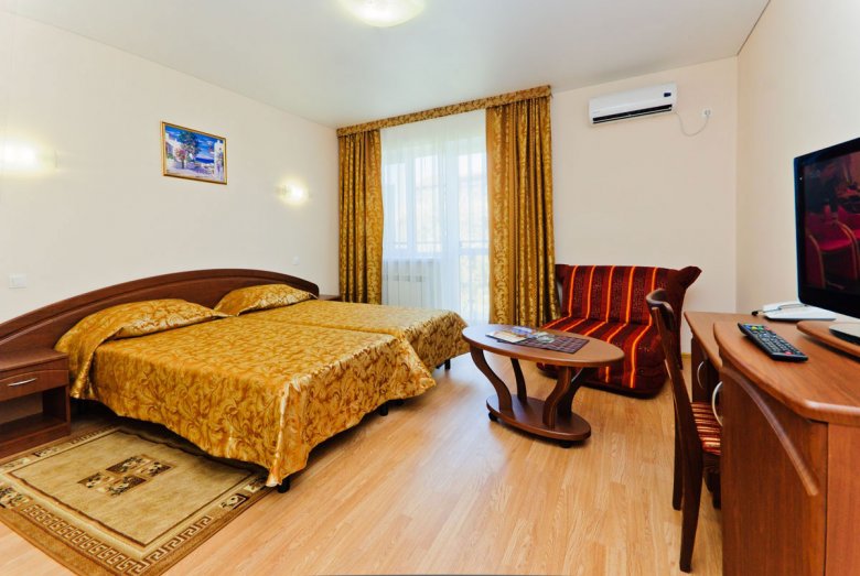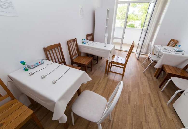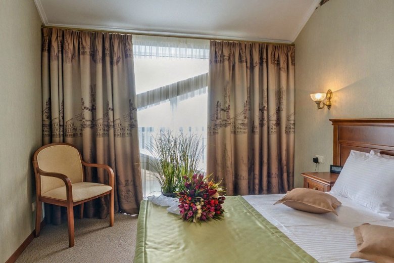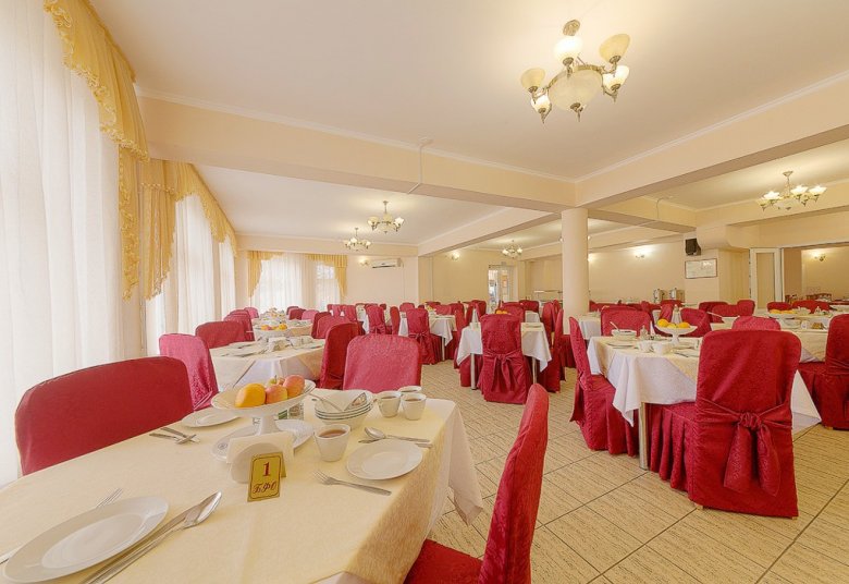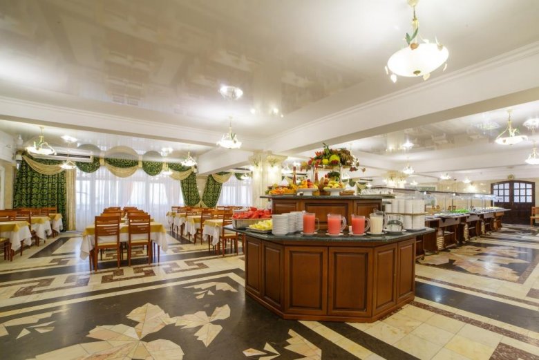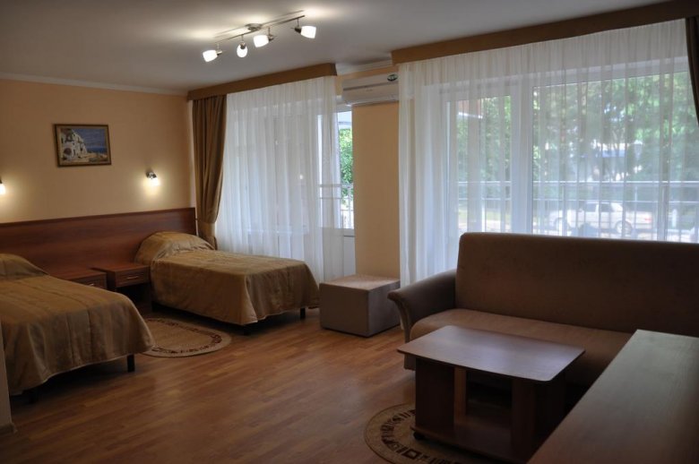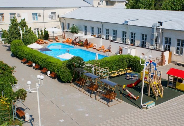 Jedna od prednosti lječilišta je raznolik i ukusan buffet. Pješačka udaljenost od mjesta je dječji zabavni park i središnje šetalište. Stvoreni su i uvjeti za one koji ne žele ići izvan granica doma zdravlja: bazen s morskom vodom, sportski sadržaji i iznajmljivanje sportske opreme. Idite ovdje, svakako isprobajte ljekovite koktele s kisikom, koji su pripremljeni po Vašoj narudžbi u fitobar. Pros: mogućnosti za aktivnosti na otvorenom, igraonica za djecu, sefovi. Cons: Wi-Fi je dostupan samo u predvorju.