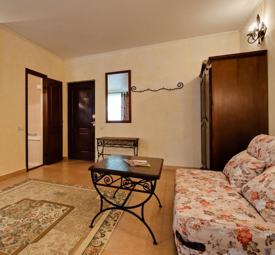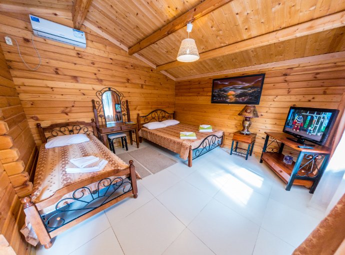 Khutorok se razlikuje od mnogih hotela u udobnim kućama koje su zamijenile višekatne zgrade. Područje je vrlo tiho, pa su mjesto odabrali roditelji s malom djecom. Na gradilištu je objavljeno svakodnevno čišćenje, iako gosti tvrde da je sluškinja mnogo rjeđa. U cijenu je uključen jednostavan doručak s domaćim proizvodima, a uz europsku i kavkasku kuhinju nalazi se kafić. Bežični pristup internetu dostupan je u cijelom hotelu, a tu je i teren za odbojku i igralište za djecu. Nema animacije, za zabavu je potrebno organizirati turneju. Do plaže pješice oko 15 minuta.