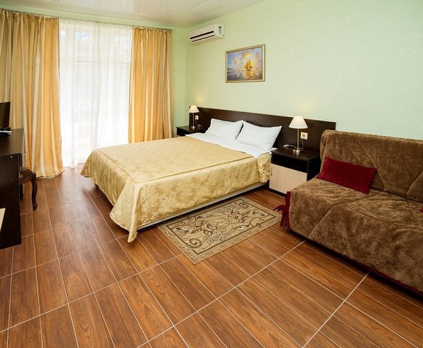 Hotel ima besplatan parking, dovoljno mjesta za sve. Recenzije hvale osoblje, stvarajući uvjete za opuštajući odmor. Hrana bez prava na jedinstvenost, ali ukusna.Postoje redoviti autobusi do Anape i Vityazeva, a sam hotel je daleko od burnog života. Sobe su opremljene vrlo jednostavno, bez balkona. Nekoliko je dodataka za tuš, rijetko zamijenjeni. U kupaonici nema ventilacije, pa ponekad miris kanalizacije. Deluxe sobe nalaze se u novoj zgradi, gdje je namještaj udoban, drugi se ne mogu pohvaliti visokom razinom udobnosti.