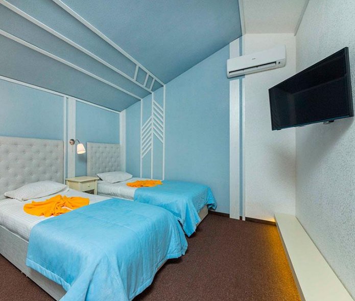 Gosti proslavljaju dobru plažu, nije pretrpana. Hotel se nalazi u blizini tržnice s jeftinim voćem i povrćem. U večernjim satima preporuča se odlazak na nasip, u ovom trenutku Anapa je posebno lijepa, ispunjena nevjerojatnim mirisima i zvukovima. Na pozitivan način spominju prostrane sobe, svijetle boje mogu privući i odbiti. Wi-Fi savršeno hvata cijelo vrijeme. Obroci se mogu naručiti u blagovaonici, porcije su velike, izbornik je raznolik. Na području postoji bazen, ali mali, ali puno ljudi. Nekoliko puta tjedno animatori dolaze i zabavljaju djecu cijeli dan.