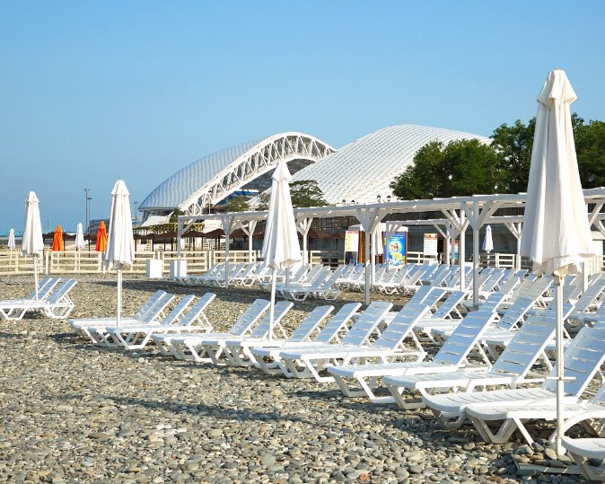 Gosti upozoravaju da je plaža daleko, da se oko 15 minuta vozi neotvorenom stazom. Nema transfera, samo najam bicikla. Na moru su plaćene svlačionice, tuševi i toaleti, prodavači hrane i fotografi. Na dnu šljunka preporučljivo je uzeti gumene papuče. Većina gostiju ne napušta hotel ili izleti. Park Soči je blizu, ali radi samo u sezoni. Spa kompleks je besplatan za goste u sobama visoke kategorije.