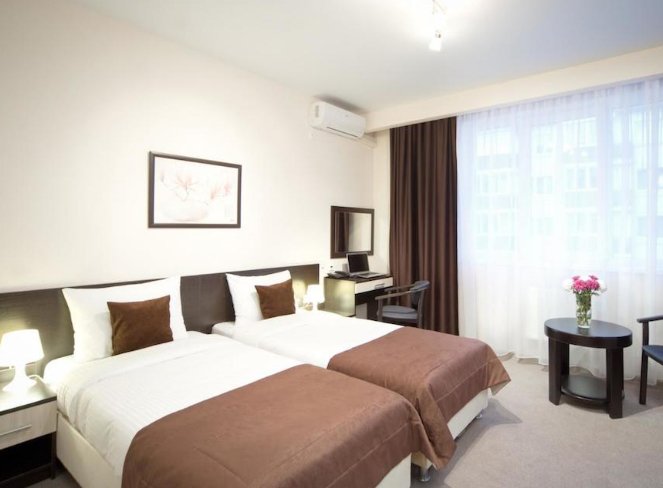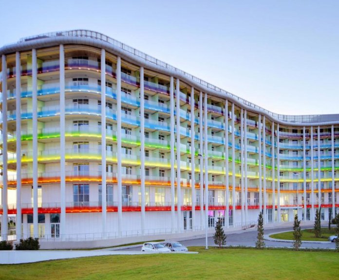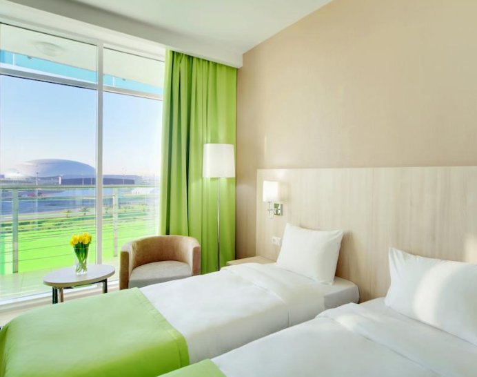 Otvara rang najboljih hotela Tulip Inn Omega Sochi 3 *, koji je privukao našu pozornost na lokaciju. Mjesto je dio olimpijskog sela, okruženo velikim zelenim prostorom, unutar pješačke udaljenosti od mnogo zabave. Do vožnje samo 5 minuta hoda možete uzeti bicikle i skutere. Sobe su jednostavne, ali prostrane i nove. Osoblje odgovara na zahtjeve kupaca, ažurno ažurira mini-bar i potrošni materijal. Mnogi ljudi vole restoran s dječjim jelovnikom. Doručak je na bazi švedskog stola.