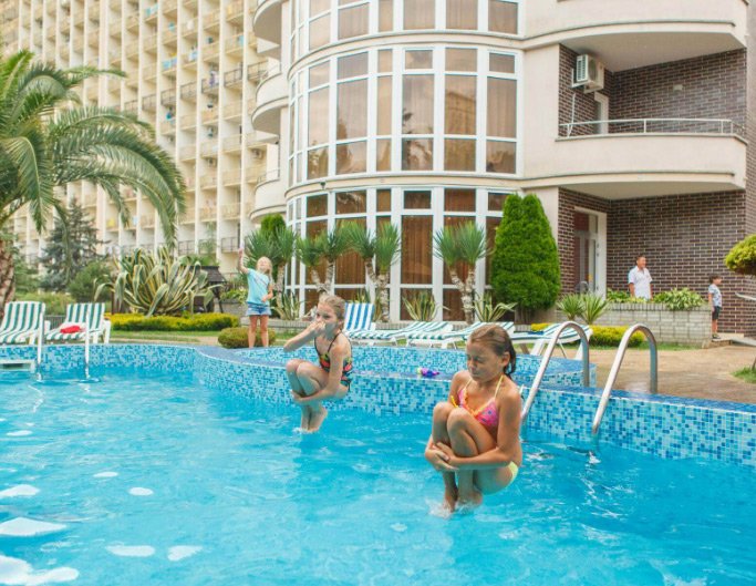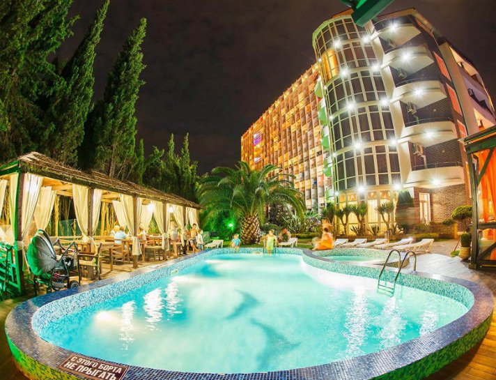 Među najboljima je Hotel LIBERTY FLY, okružen zelenim područjem s palmama, čempresima i magnolijama. S prozora se pruža pogled na more i uređen park. Hotel ima restoran i poslužuje buffet. Na jelovniku su kavkaska i ruska kuhinja, nekoliko dječjih jela. Gradska plaža nalazi se 5 minuta pješice, u isto vrijeme koliko je potrebno za pješačenje do noćnih klubova. Dolaze u hotel kako bi prenoćili i provode dane u dupinarijumu, olimpijskom parku i zabavnim vožnjama. Na području postoji fitness klub, majke s djecom mlađom od 3 godine dobivaju popust i mogućnost sudjelovanja u posebnim razredima.