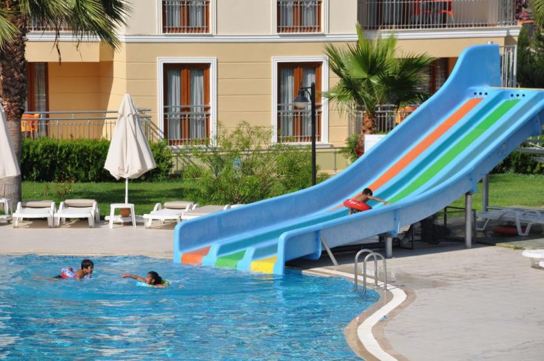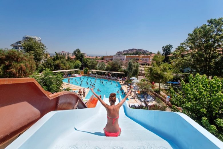 Hotel Banana 4 * okružen je narančastim šumarcima. Ovo je jedno od najljepših mjesta u Turskoj, gdje se možete opustiti uz jeftinu obitelj.Mali kompleks se sastoji od samo 82 jednokrevetne, dvokrevetne i četverokrevetne sobe. Na području postoje dva bazena s toboganima za odrasle i djecu. Otvoreni su 3 bara: Olimpik, plaža i Bakus koji nude širok izbor alkoholnih i bezalkoholnih pića.