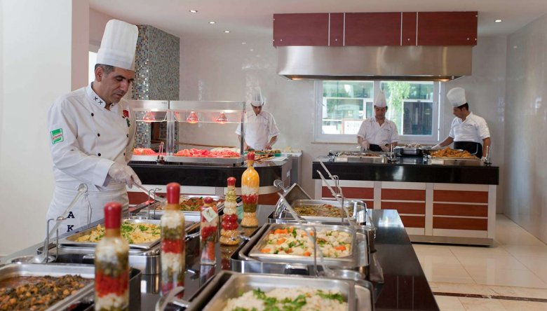 Posjetnica hotela Riviera & Spa Resort s 4 zvjezdice je na principu švedskog stola. Poslužuje europsku kuhinju u autorovoj interpretaciji kuhara. U recenzijama pišu da uvijek ima svježih i ukusnih slastica, a od 15:00 do 17:00 sati u baru u predvorju možete dobiti sladoled. Na području postoje dva bazena, no broj ležaljki je ograničen, stoga preporučamo da sjednete ujutro. Pros: vrlo dobra lokacija, čiste i uredne sobe, slikoviti vrt s tropskim biljkama i fontanama. Jedini negativni - zabavni programi u večernjim satima rijetko se održavaju.