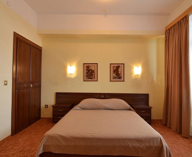 Carstvo zaslužuje da ga se naziva najboljim, jer je zauzelo savršeno mjesto za raznolik odmor. Pansion se nalazi u središtu grada, 30 metara od nasipa, u blizini glavne zabave. Za 5 minuta turisti stižu do dupinarija, akvarija, centralnog parka. Ljubitelji morske zabave nisu ignorirani: najveća pješčana plaža proteže se 50 metara. Sanatorij je namijenjen prevenciji bolesti mišićno-koštanog, respiratornog i živčanog sustava. Medicinski centar koristi prirodna svojstva naselja, nema ozbiljnog tretmana. Gosti borave u sobama s klima-uređajem, modernim aparatima i balkonom. Zimi i ljeti postoje bazeni, sobe za igre i sauna. U toploj sezoni djeca zabavljaju animatori.