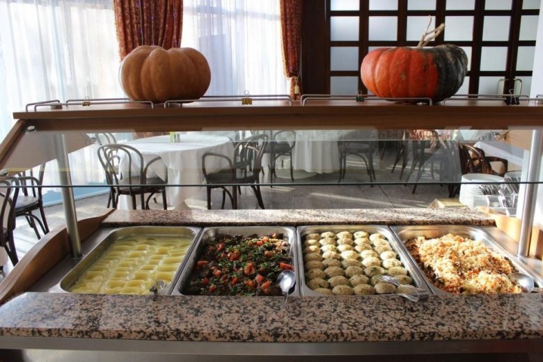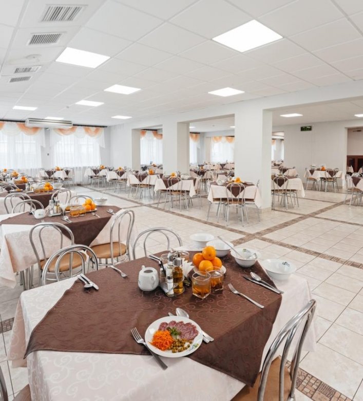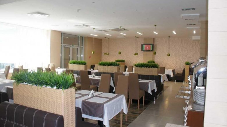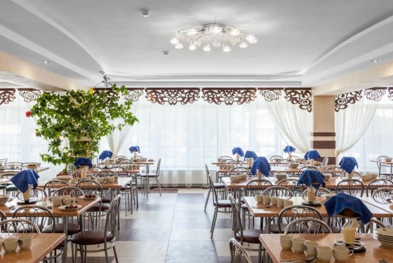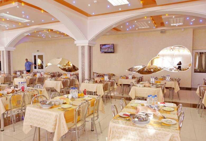 Obroci se organiziraju prema "buffet" sustavu u glavnoj blagovaonici za 250 osoba. Osim toga, Bar Illusion je otvoren, gdje možete naručiti svježe iscijeđene sokove i fito-koktele. Tu je platforma za kebabs, a ražnjići i drva za kuhanje se daju gostima na zahtjev. Pros: zatvoreni bazen, jeftini izletnički programi i SPA-kompleks.