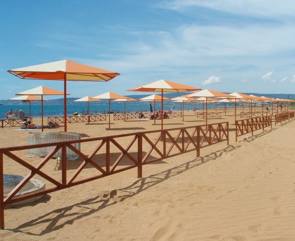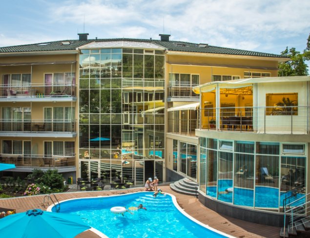 Riviera Sunrise Resort & SPA 4 *, koji je zauzeo mjesto u središtu grada, nudi aktivnosti na otvorenom za sve uzraste. Školjke su podijeljene po dizajnu: jedna stvorena za ljubitelje prirodnih materijala, druga privlači modernim dizajnom. Na području se nalazi jedan odnajviše veliki lječilišta Krim, fitness klub, restorani, dječja škola s malim bazenom. Privatna plaža opremljena je svime što vam treba, staze su položene na njega. Djecu se može ostaviti dadilja, zabavljaju je animatori.