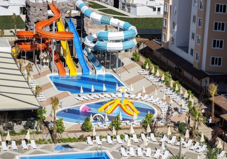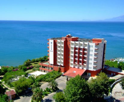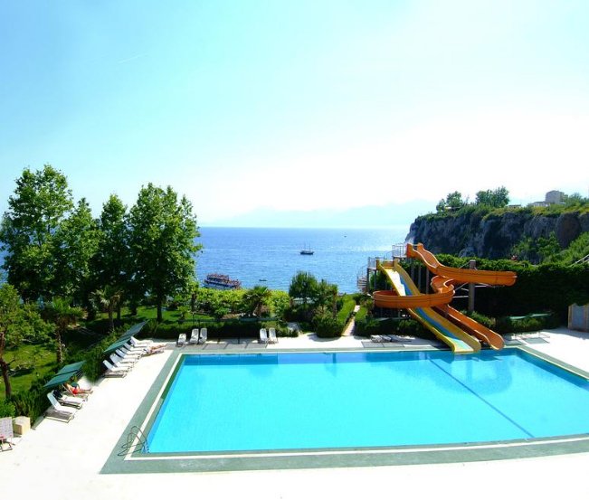 Otvara rang najboljih Adonisa 4 *, mame turiste toboganima i prostrane sobe s pogledom na obalu Antalye. Hotel je obnovljen 2018. godine, potpuno je promišljao boravak gostiju. Svaka soba ima moderan TV, odličan namještaj. Restoran poslužuje domaća i međunarodna jela. Ako vrijeme dopušta, gosti su smješteni na terasi. Barovi i klubovi nisu udaljeni više od 5 minuta, tako da oko hotela često možete čuti lokalnu mladež.