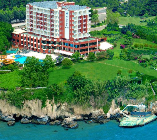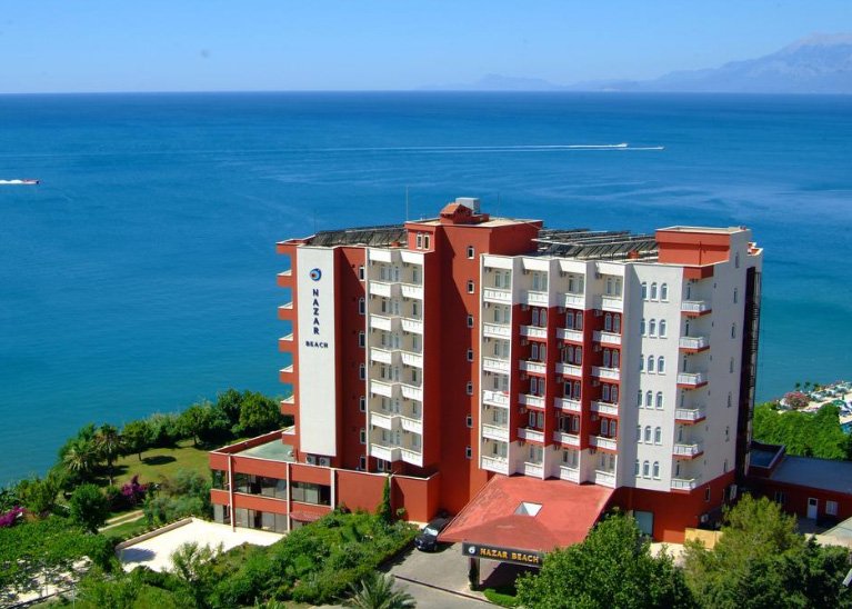 Nazar Beach Hotel 4 * je najbolji izbor za ljubitelje vodene rekreacije. Na području se nalaze unutarnji i vanjski bazeni s toboganima, spa centar. Hotel je na 1 liniji od mora, na plaži ima dovoljno ležaljki i suncobrana. Dnevni otvoreni fitness centar, sobe za masažu. Restoran s pristupačnim cijenama poslužuje europska jela. Večeru možete naručiti na slikovitoj terasi. Barovi su otvoreni cijeli dan. Jednostavne sobe imaju standardne sadržaje, uključujući i mali balkon.